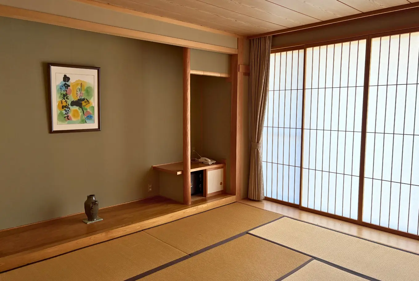 明日香荘の客室は、静かに過ごすための和の空間。